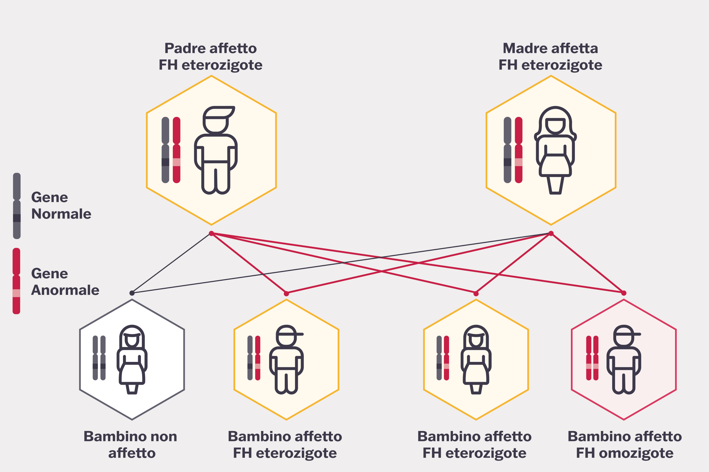 L'HoFH si verifica quando si ereditano due varianti patogene portatrici del gene che causa l'ipercolesterolemia familiare (FH), una da ciascun genitore.1